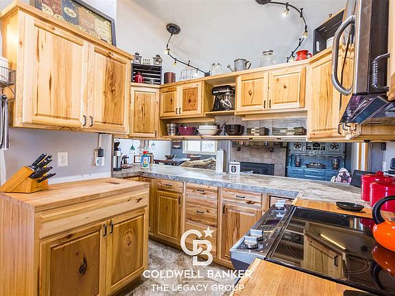 Darling Ranch with 2 bedrooms on the main, brand new kitchen and pantry with tons of storage! Warm colors and vaulted ceilings welcome you into this lovely home. Living room with dining area and pellet stove. Slider out to the spacious and fenced backyard with gazebo, 3 sheds and garden area. Downstairs features a cozy family room and an additional bathroom, bedroom and laundry. Amazing views at Casper Mountain and borders a park!