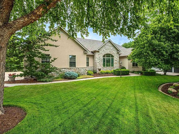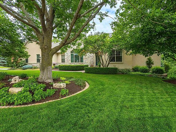 Impeccable ranch home located on an exquisite .55 acre lot in desirable Highland Green perfect for entertaining. Main floor features a welcoming foyer; great room with cathedral ceilings, custom beams, fireplace and built ins; large open kitchen with breakfast bar, granite countertops, skylights, informal dining space and sitting area; wet bar; primary suite with dual vanity, tiled shower, jetted tub and generously sized walk in closet; guest room with adjacent bath; family room; and light filled laundry room with utility sink. The finished walk out basement includes a fantastic rec room with fireplace and built ins; billiard room (perfect for a 4th bedroom); guest room; full bath; workshop; an abundance of storage space and stairs to the garage. Additional amenities include a covered porch off the main floor with fireplace, built in grill and skylights; patio off the rec room; heated 3-car garage with epoxy floor; garden/golf cart garage (11 X 16.11) with epoxy floor; and a gorgeously landscaped yard.