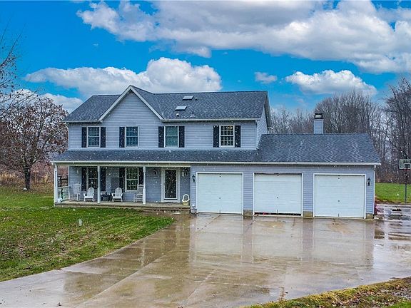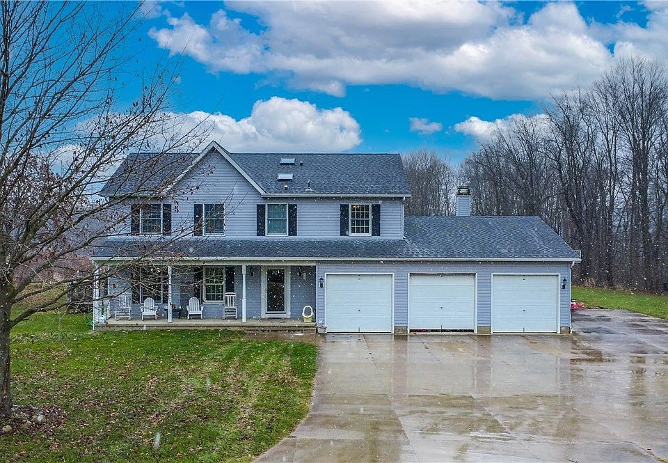 Welcome home to 6471 Fairland! Nestled on a sprawling 11-acre property, this charming Colonial home offers five spacious bedrooms, 2.5 bathrooms, and tons of living space. Upon entering, to your left is a bonus room that could be used as an additional bedroom or flex space. Before you get to the kitchen, you'll find the 1/2 bath. The kitchen features original cabinets, laminate counters, and a convenient pantry. The peninsula connects the kitchen to the eat-in area, perfect for gatherings. The family room is a cozy retreat with LVP flooring, a wood-burning fireplace, and an inviting open flow to the kitchen. In the dining room, LVP flooring leads to sliding doors that open to a wooden deck overlooking the picturesque backyard. It is a perfect spot to relax or entertain. Off the dining room is another office or flex space. Upstairs, you'll find five spacious bedrooms, including the master suite with its own full bath. Outside, the expansive 11-acre lot provides scenic views, plus there is a three-car attached garage with plenty of car and storage space. Don't miss your chance to see this beautiful home; schedule your showing today! (Updates include newer LVP flooring and carpet. The floors upstairs was done in December of 2024. Downstairs flooring was done earlier this year. All 3 bathrooms have been redone this year except for the tubs. House is all electric with geothermal heating/air.)