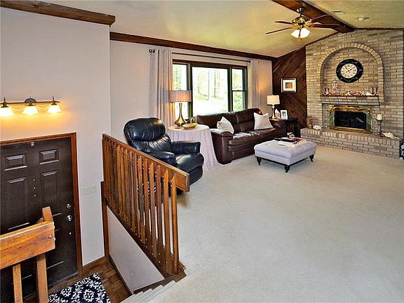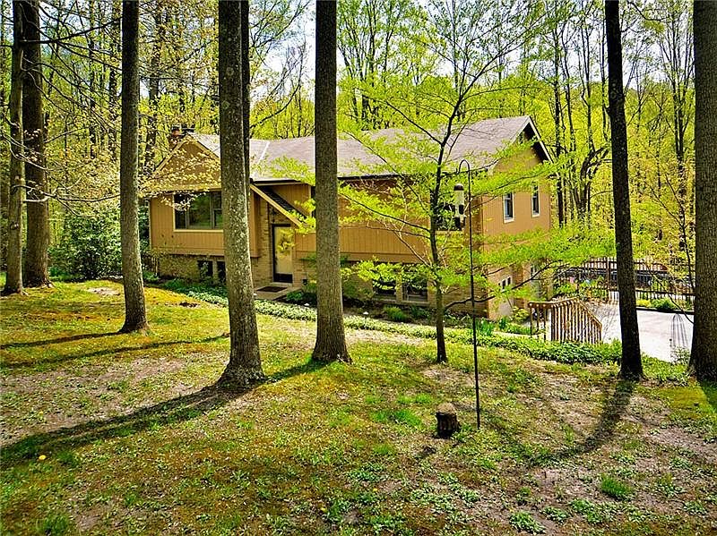 Gorgeous house privately situated on three plus acres / Large living room with cathedral ceiling & custom brick fireplace / Dining room opens to recently updated custom kitchen with granite and ceramic / Rear deck along with balcony from master bedroom overlooks the heated in-ground pool / Finished lower level family room with Kodiak wood burning stove and sliding doors that open to lower level patio and pool / Property and house have been beautifully maintained !!