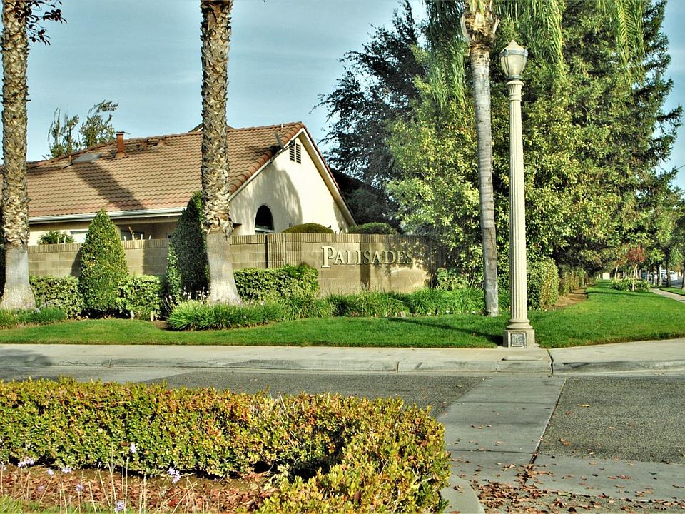 Location! Location! Location! North Fresno Mansionette Palisades. Home in highly desired gated community. This wonderful three bedroom 2/5 bathroom with open floor plan features the mater bedroom/bathroom downstairs on ground floor. Very clean house featuring beautiful granite counters throughout kitchen w/separate electric oven with gas cook top. Eating area is in front of kitchen which allows for excellent view out the front windows or enjoy counter at opposite end next to dining area. Loft currently being used as office, Great use of wood, carpet and tile flooring used throughout house as well as numerous pocket doors. There is a ceiling fan in every bedroom and living room. Laundry room inside separates two car garage from rest of house. Many more features make this house siting on a larger corner lot very desirable.