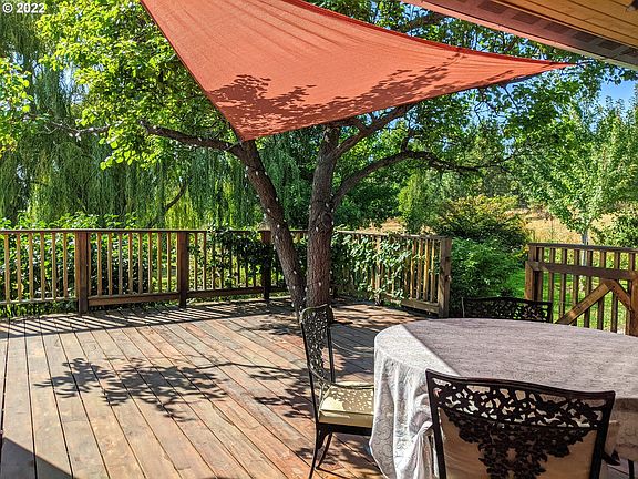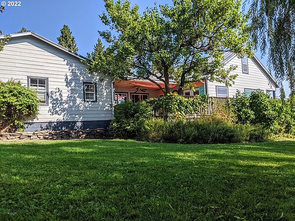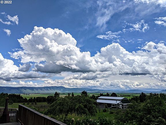 Rare location! Don't miss this 4 bed, 2 bath home located at the base of Mt Emily on Orchard Road. Incredible views of the mountains and valley from large windows and the deck. Big yard with 8 zone sprinkler system, shade trees and beautiful shrubs and flowers. Large 40x60 barn with finished shop space inside. Horse paddocks and large riding arena. The property is cross fenced. Carport with EV charger attached to finished shed. Some timber. Pool. Owner is licensed Oregon Real Estate Broker.