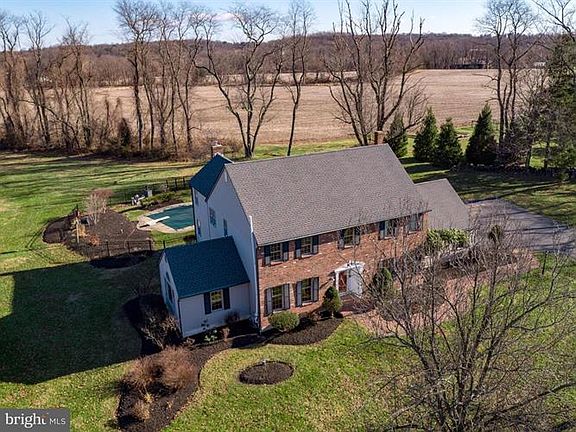Exceeding Your Expectations! Marvelous 3 acre house in the heart of prestigious Bucks County home to rolling hills, beautiful farmland with stunning bucolic views, fascinating history and unique shopping. The brick paver walkway and custom landscaping offer charming curb appeal which is further enhanced by the covered front entrance-way. This exceptional 4 bedroom, 3 bath brick colonial offers an abundance of luxurious amenities including rich hardwood floors through-out except baths and kitchen. Welcoming two story foyer with crown molding and dual coat closets. Elegant living room offers recessed lighting, crown molding and wainscoting. Gracious formal dining room with recessed lighting, crown molding and wainscoting offers apace for more formal entertaining. New gourmet kitchen with breakfast area and white cabinetry boasts recessed lighting, attractive pendent lighting, granite counters, island breakfast bar, stainless appliances, deep under-mount sink, walk-in pantry and ceramic tile floor. Inviting family room is ideal for relaxing with recessed lighting, crown molding, bay window and cozy wood-burning fireplace with exit to deck. Convenient first floor office with vaulted ceiling. First floor laundry with laundry sink, double closet with ceramic tile floor. First floor full bath. Oak hardwood stairs to second floor with recessed lighting, crown molding and two hall closets. Hardwood floors throughout second floor. Master bedroom retreat offers bay window and walk-in closet with built-ins. Master bath with new light fixtures, dual vanities, shower jetted tub and ceramic tile floor. The three additional bedrooms have closets with custom built-ins. Hall bath with dual vanities, tub shower with ceramic tile floor. The lower level offers a partially finished area with recessed lighting and carpeting an additional 500 sq ft of living space. There is an unfinished area for good storage. The deck has built-in seating and over looks the lovely in-ground pool. Newer roof, pool cover and 2 garage doors. This property is convenient to NJ, New Hope, Doylestown plus the historic Solebury Villages of Carversville and Lumberville. Also near-by is the Delaware River area with its many special restaurants, shopping and entertainment. A one year AHS Home Warranty for peace of mind! What a perfect place to call home!!