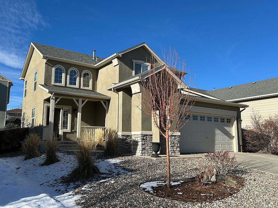 This beautifully upgraded residence is situated near the sought-after Powers corridor and is in pristine condition, featuring numerous enhancements. The expansive family room, equipped with a gas fireplace, seamlessly connects to a modern kitchen designed for conversation. The open floor plan is filled with natural light, showcasing a large island and a designated dining area, along with EV charging capabilities, hot tub prewiring, an ADT security system (monitoring not included), keyless entry, a new furnace, and window shutters throughout. Additional amenities include newer stainless steel appliances, a double oven, central air conditioning, a finished basement, a surround sound system in the great room, and both front and back patios. The property is conveniently located within a short walking distance to elementary and middle schools (Ridgeview and Skyview), with a slightly longer walk to the high school (Vista Ridge) in the D-49 school district. The interior features calming custom colors, while the master suite boasts a walk-in closet and a spacious bathroom with an oversized shower adorned with exquisite upgraded tile. The fully landscaped yard includes low-maintenance artificial turf and privacy fencing in the back, complemented by two patios one at the front porch and another in the backyard. Additionally, residents can enjoy easy access to a remarkable neighborhood park. 12 month lease. Renter is responsible for all utilities, NO SMOKING of any kind allowed on the premises. Renter is to maintain the yard.