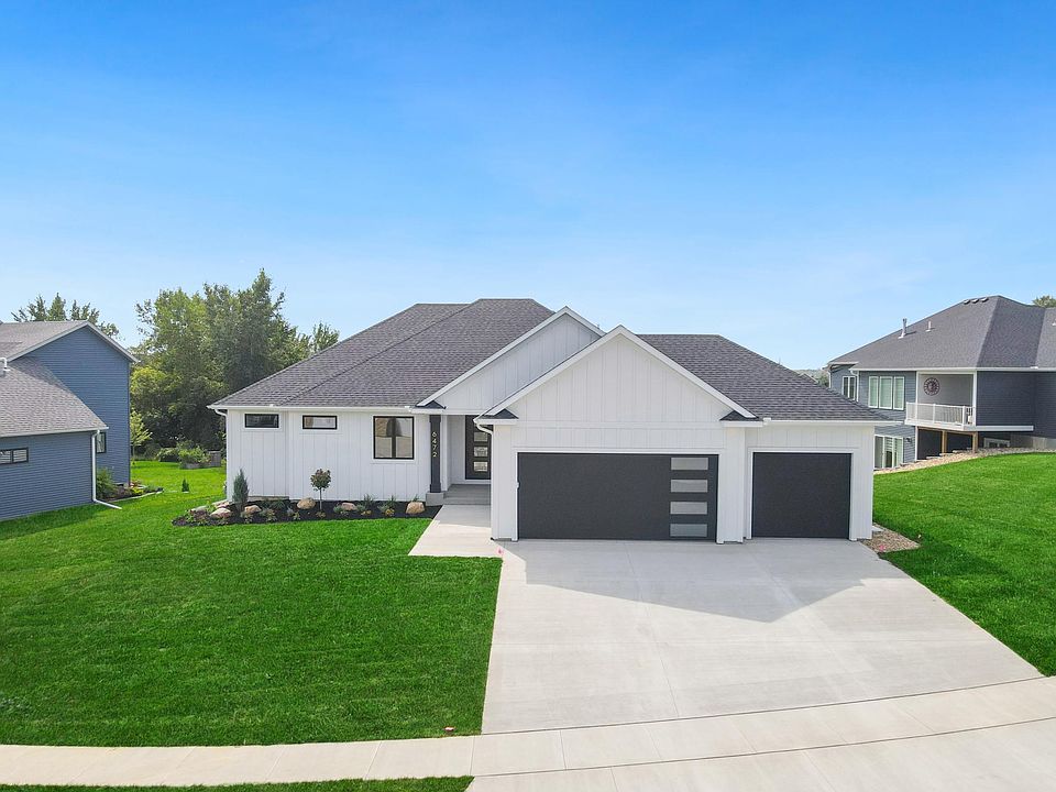 Gorgeous craftsman style rambler with covered entry way. The expansive main floor opens up with an abundant amount of natural light. A custom build with high-end features such as quartz counter tops, custom cabinetry, two fireplaces, lawn irrigation, and hardwood floors. Upgraded foundation for a solid build, stronger than poured concrete. Other floor plans and lots are available with this design-build company. We welcome you to tour this model or schedule a consultation to build your dream home! HERS Energy Rating Score of 47!