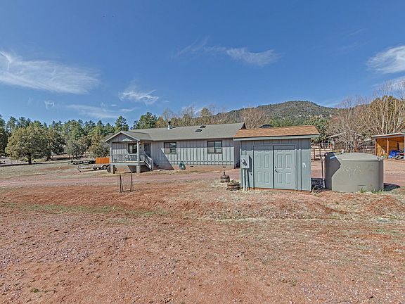 Desirable single story 3 bedroom, 2 bath home on level .61 acre with nice views of the Rim. Open great room with vaulted ceiling, large picture windows, engineered wood floor & wood stove. Kitchen features hickory cabinets & breakfast bar peninsula. Master bedroom with en-suite bath & walk-in closet. Sliding glass doors off dining area lead out to a spacious covered deck overlooking large kid & pet friendly fenced back yard with lots of room to run around & play or have a place for horses. Also has raised garden beds & kids' playhouse. RV gate & parking. Plans available to extend house to include finished basement (access from exterior now) & add detached garage. Private well & water storage tank for gardening & landscaping. Property will be connected to PSWID water system. No HOA.