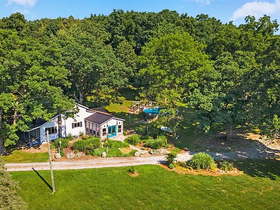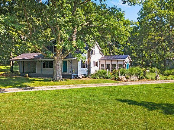 This private wooded 5-acre homestead has mature trees, fenced pasture, out-buildings, and amazing views! Enjoy it all from your large covered front porch. The great room is full of windows making a great space to enjoy all seasons! The spacious kitchen has an abundance of cabinets and countertop space, breakfast bar, smooth top electric range with a double oven, microwave, and dishwasher. Measuring 17x12, the utility room has many possibilities and has its own set of cabinets with a sink. The master suite has a full master bath with a walk-in tiled shower, private porch entrance, skylight, and a den accessible through the master bedroom. The “detached garage” is 32x40 and is insulated, heated, has a floor drain, overhead door, and the back side has 2 sliding doors for pull through access. The “pole barn” is 40x72 with 2 overhead doors, a sliding door, and half of it has a concrete floor. A great place to start your mini farm or park the RV/camper/boat. The metal roof is about a year old and comes with a lifetime transferable warranty. The Furnace & central is approximately 10 yrs old. The above ground pool is just 3 yrs old- opened and ready to enjoy! Its Centrally located and just 11 min to Avilla, 11 min to Churubusco, 16 min to Albion, 17 min to Kendallville, 10 min to Laotto, 15 min to Huntertown, 20 min to Auburn, 25 minutes to Columbia City, and 20 min to North Fort Wayne. The room listed as the master bedroom was originally built as a family room and could be used as such, and making what is listed as the den, a bedroom.