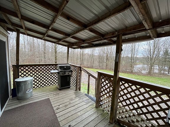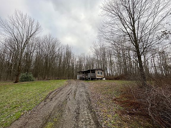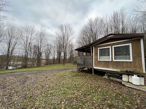 Whitetail properties is pleased to present a great hunting property near Bemus Point, NY. This easy-walking and great hunting property has a 400-square-foot cabin perched on a little hill behind a gated entrance overlooking a large pond. There are several food plots on the property and five tower blinds with roofs strategically placed for success. There is also a large pond near the road front, home to puddle ducks, as a well as a second pond on the edge of the woods. Winding trails course through the property with over 2 miles of access to all corners making this property hunt big. The trails are cleared wide enough for an ATV, and the main trail enters and exits each food plot. The cabin is efficient with an open room for gathering, a galley-style kitchen with stove, fridge, microwave and oven appointments. In the rear of the cabin is a single bedroom with twin size bed next to the three-piece bathroom. A two-bed (both singles) bunk room is extra bedding for kids or campmates. A newly added 10' covered front porch is a great place to overlook the pond, enjoy a morning coffee or take in the fall air and colors. For storage, the owners added a 20' Conex box, perfect for storing your ATV, snowmobiles, hunting equipment or food plot implements. The cabin has newly added electric service, and a sliding patio door for lots of daylight, and power conveniences like lights, a TV, appliances, heaters or adding a satellite dish. Water is supplied by a 250-gallon IBC tank. Deer hunting is excellent, and the occasional black bear wanders through the hardwood ridges as well. A bonus is that the property is surrounded on three borders by large Ag fields for a staple food source for deer and turkeys. At the southern boundary of the woods, a creek meanders east/west for a natural travel route for cruising bucks. Close to Sherman, Panama, and Jamestown, groceries, gas and town conveniences are just minutes away. With so much to offer and centrally located to several towns, this property might easily be converted or expanded into a permanent residence with recreation, country quiet and deer hunting at your back door! Priced well to sell, check this one out.