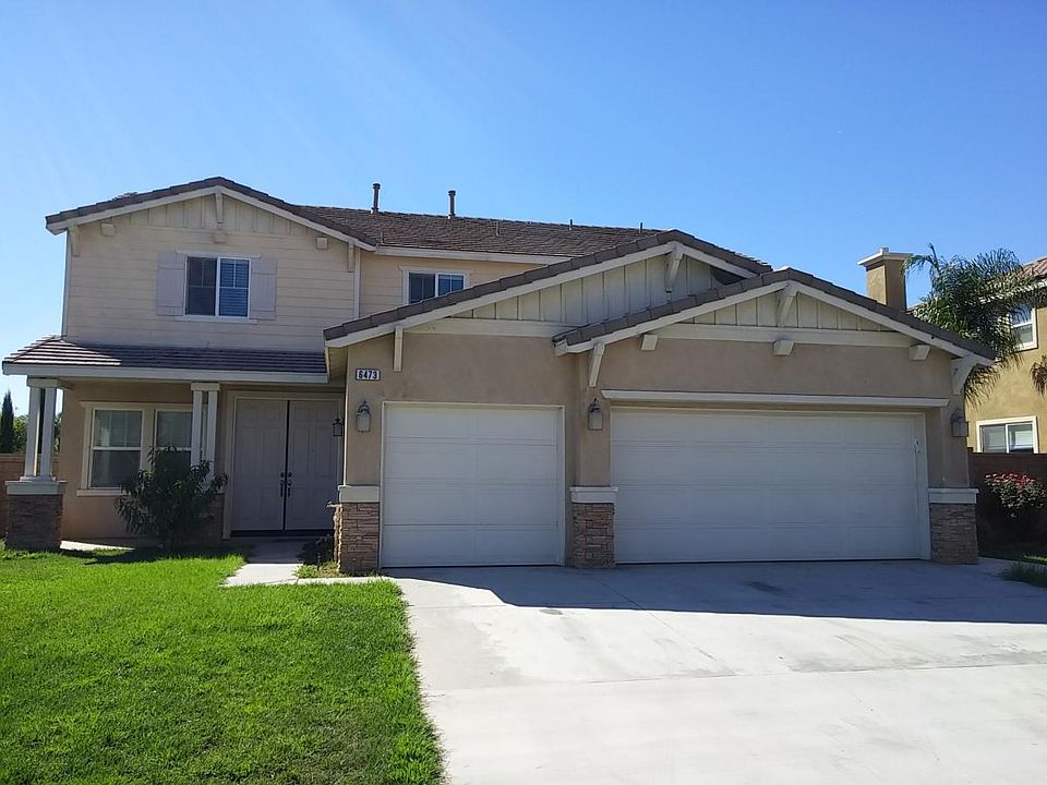 Beautiful Eastvale home features 6 large bedrooms and 4 full bathrooms. 3320 Sq. ft. New laminate flooring and new interior paint. Highly desired master bedroom downstairs. This home is located in a convenient area of Eastvale, Close to the freeways and Eastvale Gateway shopping centers. A big loft and large bedrooms. A great home for a large family, not to mention the great schools! Tenant is responsible for all utilities and gardening. FICO 620+ Income 2.5x rent 1-year lease Tenants responsible for all utilities and gardening