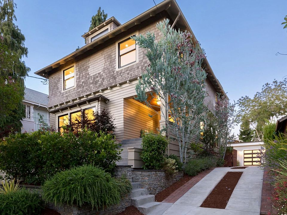 On a quiet, well-connected street between the shopping districts of Rockridge and Elmwood, 6474 Benvenue offers a tranquil retreat with 4 bedrooms and 3 full, plus 2 half bathrooms. Exquisitely renovated, this cosmopolitan pied-à-terre features a stunning open-concept main level with a spacious foyer, formal living room with decorative fireplace, open kitchen, dining area, and family room. The kitchen boasts custom cabinetry and a grand center island, while the family room opens through glass doors to a sprawling deck and lush garden. Adjacent to the kitchen are a laundry room, wet-room bath, and a Dutch door to the garden. Upstairs, an expansive primary suite awaits, along with an ensuite bedroom, two additional bedrooms, and a hall bath. The private rear garden features a manicured lawn, patio with seating and a fire pit, and raised beds for a home garden. A large deck provides ample space for outdoor entertaining. The detached one-car garage, equipped with a powder room and kitchenette, offers potential as a future guest house. A private gated driveway with a custom wood gate and automatic opener ensures security and ease. Located near Elmwood and Rockridge's charming shops and gourmet restaurants, this residence offers effortless access to San Francisco. Welcome home.