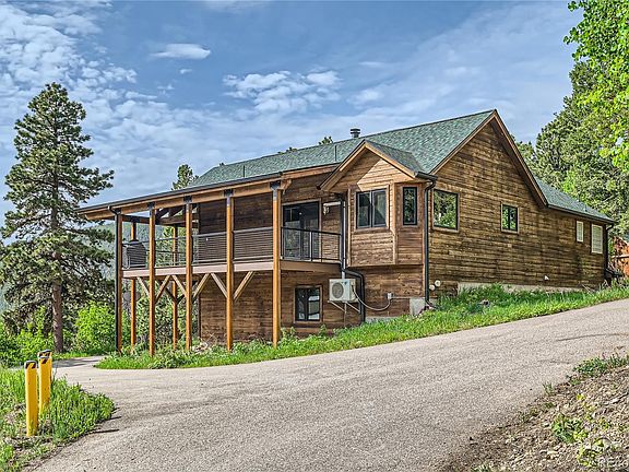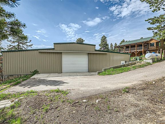 AMAZING VALUE AT THIS NEW PRICE! Serenity, privacy and easy access to this rare find and highly desirable foothills property on 10 acres, with a horse barn, and a 6000 square-foot steel building. The steel building was built for the car enthusiast, has radiant heat including the pad outside the 14' overhead door, a plumbed compressor, an office/rec room. Imagine the possibilities; indoor RV or boat parking, mechanic's dream shop, wood or metal working, indoor shooting/archery range, batting cage, sports court, roller skating, roller hockey, indoor soccer, basketball or pickleball court, and plenty of storage. The house is mountain contemporary with open-concept design, vaulted ceilings, large new windows, and covered wraparound deck with stunning foothills views. the deck is huge and perfect for your yoga and meditation retreat! The large open kitchen is ideal for cooking and entertainment. The lovely open master includes a walk-in closet and en-suite bathroom. Additional bedrooms provide ample space for family, guests, or a home office. The lot and land offer both privacy and functionality including the circular paved driveway for access the house, horse barn, and steel building for all your cars and toys. The attached garage is oversized and has a washroom for all your gear. There's a 860 sq ft horse barn with a loft and a door out to the horse corral. For the dog lover; there's a 200 sq ft heated and air-conditioned dog house as well as an expansive fenced dog run. Enjoy easy access to Golden Gate Canyon road, Golden Gate Park, and the charm of downtown Golden. The roof, deck, windows, Combi boiler tankless hot water are all new. The ATV and attachments are included, and the skid steer in the steel building is negotiable or included with a full-price offer. This is the best value in Golden Gate Canyon and the surrounding foothills.