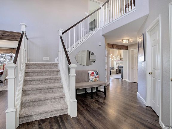 Welcome home to your gorgeous and designer-finished sanctuary located on peaceful open space! In the grand entry, you're met by a beautiful staircase in the center of an open floor plan. Upgrades throughout the main level feature gleaming wood floors, magnificent light fixtures, and authentic barnwood beams wrapping the doorways! A large pretty kitchen with stainless appliances, eye-catching island and eat-in area connects to the sunlit great room with gas fireplace! Entertaining can continue in the luxurious dining and living areas. The elegant dining room is finished with ship lap and a dazzling chandelier. Bedroom on main floor has French doors and an ensuite bath, and can also be used as an office, or a main floor master for those who can't use stairs! Upstairs you will find a huge and bright primary suite with 5-piece-bath, large soaking tub, and walk in closet! Two more bedrooms include one on-suite bath and a Jack and Jill bath. Brand new custom basement will take your breath away! Luxe finishes include a Vintage View wine room, striking wet bar, barn doors, huge bedroom with wood floors and modern bath, plus a cozy media/rec room. Privacy abounds from the nice back patio that faces open space - complete with mature landscaping, fence, hot tub, gas line and easy-maintenance turf! Exterior updates include fresh paint and newer windows. Store all your rec items in the 3-car garage with cabinets and included storage shed. Also of note are a whole-house humidifier, newer impact resistant roof, furnace, A/C and hot water heater! New sink/cabinet in garage to be included for main level powder room. Located in Greenfield with scenic trails, pond, clubhouse, seasonal pool w/ water slide & children's splash and play swimming pool. Community park, and playground are a short walk, plus quick access to the Piney Creek Trail system too! Convenient bus stop for Rolling Hills Elementary is located at the Greenfield Clubhouse & Swimming Pool! Don't miss this rare beauty!