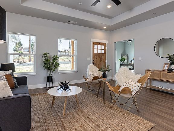 Welcome home to your own little piece of Paradise. Nestled in on a quiet backroad, this 2 bedroom, 2 bathrooms with an office will take your breath away. The fully landscaped front yard will lure you in with its gorgeous green grass and its adorable flower bed. After entering the beautiful oak front door, youll continue into your 1498sqft open floor plan and 9ft coffered ceilings with imperfect smooth finish, it is sure to impress. The kitchen and bathrooms feature quartz countertops with custom paint grade cabinets. Walking into the master bathroom will give you chills. A beautiful double vanity will welcome you with a gorgeous tile floor leading you straight into your walk-in shower with not one, but two shower heads. The kitchen is equipped with high-quality stainless-steel appliances, a pull-out trash bin and a gorgeous black onyx kitchen sink. The COVERED patio is more than inviting with an outdoor rated fan to keep you cool. The back and side yard are set up perfectly for an RV.