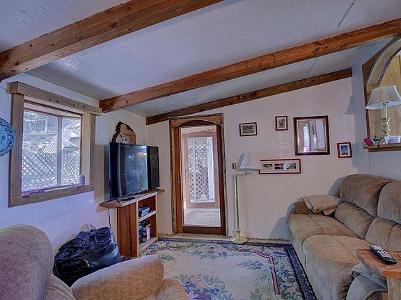In the calm Illinois Valley sits Hodge Podge Lodge! Set in the lush greens, built around 2002, 1 bedroom, 1 bath, 576 sq. ft. rustic bungalow. An enclosed glass entry welcomes you in. Living room has open beam ceilings, wood stove and door to side yard. Two steps up takes you to the Main bathroom and master bedroom with unfinished ceilings open sliding glass door where the creek dances by. Kitchen is adorable! Dining area has slider out to deck with front lawn and mountain views! There is a carport and a storage/garden shed. Apple, peach and Cherry trees line the driveway. Irrigation rights from creek go with property. Property is completely fenced and gated 2.26 acres. Cash Only. No Owner Carry.