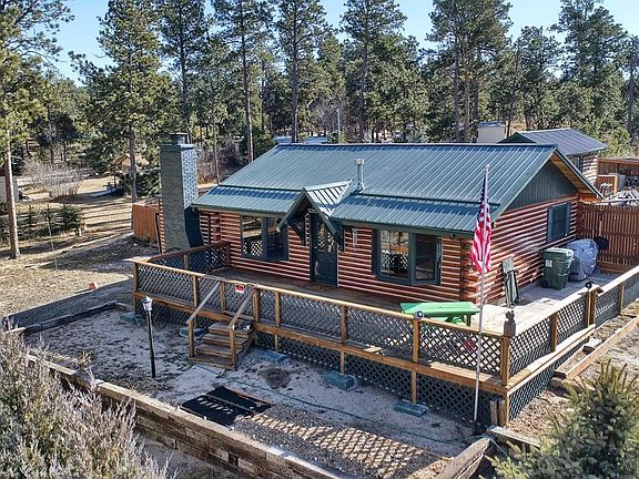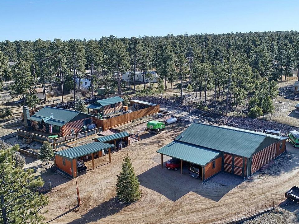 A Little slice of heaven minutes from Colorado Springs, & I25 to Denver. A Cozy 2 bedroom log cabin, tucked away among towering Ponderosa pines on 1.37 acres. The home has been lovingly restored to its original beauty & immaculately well maintained with no expense spared, with new metal roofing on all the buildings, custom made windows & updated bathroom. There is also a separate log cabin at the back with its own entrance, possibly be finished as a tiny home, guest house/office. The workshop - A must see for the mechanic or car enthusiast. Has everything, incl. a separate paint-room & separate storage/work room off the main workroom. There is also plenty of outdoor covered parking & storage attached to the workshop. The home has a generator hooked up to the house & with a flick of few switches everything will be running off the generator if the power fails. Well established blue spruce, pines and junipers added. **And please respect our wildlife -drive carefully when visiting**