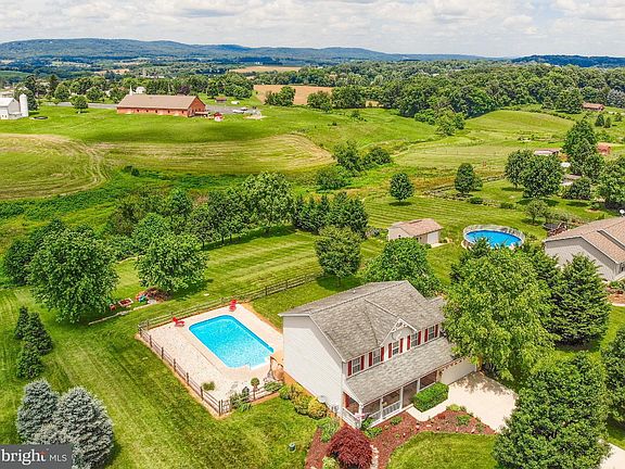 Come out to the country and enjoy your 2800 sq. ft total finished living space colonial style home that is situated on 1 acre of meticulously maintained and landscaped grounds. Relax in your salt water inground pool with canopy, fenced yard and priceless views looking over the valley. An inviting front porch welcomes you home as you pull up to this well-maintained home. Inside, the spotless hardwood floors greet you in the foyer. Off the foyer you have a separate dining room and formal living room. Walk through the foyer where you will be greeted by a cheery upgraded kitchen with tile flooring, quartz countertops, a kitchen island, and stainless steel appliances. There is even enough room for a table in this spacious kitchen. Off the kitchen is a large inviting deck for those summer grilling nights. A firepit is situated at the back of the property for roasting marshmallows for s-mores around the campfire. In the winter, cozy up to the gas fireplace in your family room that is open to the kitchen. 3 bedrooms with abundant closet space dawn the second level including a master bedroom with master ensuite and soaking tub and a hall bath that is shared by the other 2 bedrooms. Finishing off this wonderful home is a large finished basement with walkout that provides lots of natural light and an unfinished area for extra storage. Need more storage? There is a storage area in the 2 car garage with pull down stairs and a shed to store your lawn and garden equipment. With all that this home has to offer, it won-t last long!