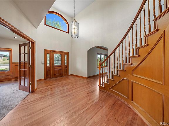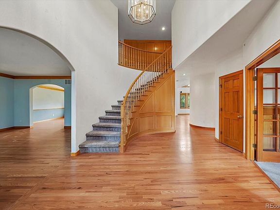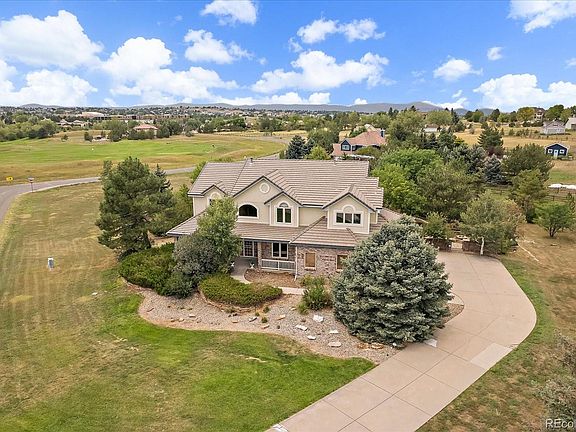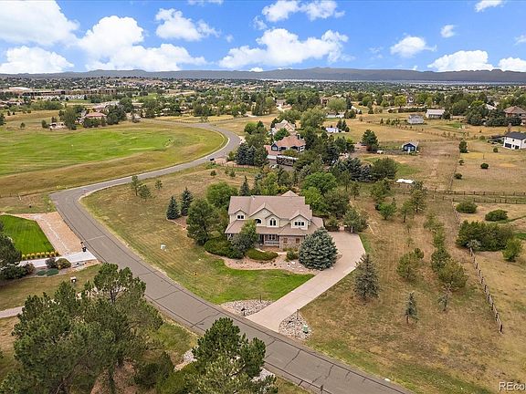 Welcome home to ample space and quiet nights at Saddle Rock Ranches. The original owners are finally saying goodbye to this amazing property. Its ideal location can't be beat. Have your own acreage across the street from the Saddle Rock Golf Course driving range. This unique lot allows you to feel like you're in the country yet be close to shopping, restaurants, great schools and easy access to E470. Arrive at the front door via a private porch. Upon entry you are greeted with a grand foyer that has a wood accent wall on both the main floor and upstairs hallway and a spacious curved staircase. The large open kitchen was recently remodeled with a Wolf Range and double ovens, two drawer Fisher and Paykel dishwasher, a beautiful Carrera stone sink, quartz countertops and so much more. The large sun filled Great Room has a Mendota Gas Fireplace and automated shutters mounted outside on upper west facing windows that block both heat and cold. Upstairs there are 2 large bedrooms connected to a jack and jill bathroom, while a 3rd large bedroom has a private full bath. The 4th bedroom is the Primary Suite with a gas fireplace, 5-piece bath, heated tile floors, an extra-long double vanity, and large closet with cedar walls. The lower sun-filled garden level is perfect for games or entertaining. Extend your living outside on the Trex deck with a motorized Awntech sunshade. The deck leads to a large, multi-level, private stone patio with both water feature and gas firepit. The property has well-established trees and landscaping providing a very private setting. This unique community is deeded for horses and/or an additional outbuilding on your property. Within the Cherry Creek School District, this amazing community has tennis, pickleball and basketball courts and horse trails throughout. Newly painted exterior as of 9/21/24.