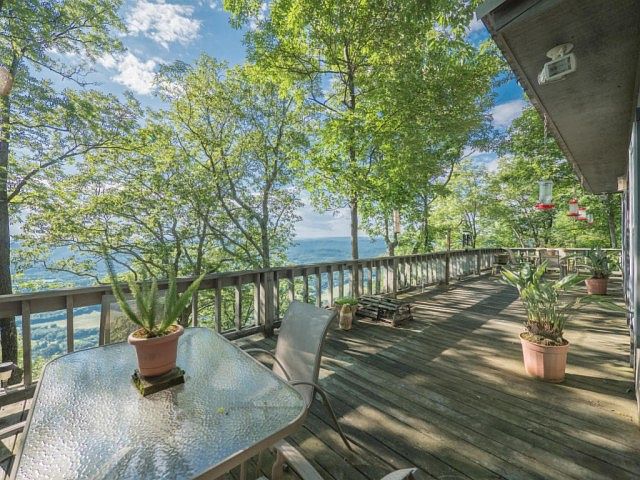 This custom built brow home is located on the western brow of Lookout Mountain. Perfectly situated to take full advantage of the gorgeous views, it's private setting is on almost 11 acres of brow property. Ideal as a primary residence, or as a weekend mountain home, this house was build with low maintenance in mind. The main floor features a large great room & dining room with gas fireplace, vaulted ceilings & a complete wall of windows. Also on this floor is a kitchen with huge pantry and a separate master suite. On the upper level,there are two spacious additional bedrooms with generous sized closets & a full bath. The expansive deck wraps around the house, providing a fabulous space for outdoor entertaining, or for just relaxing while enjoying the views!