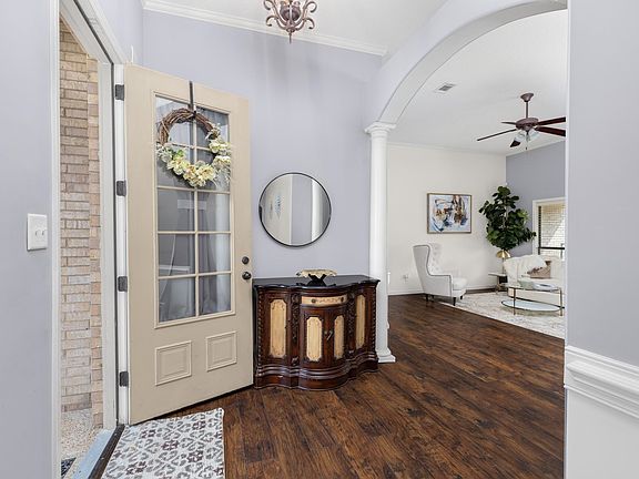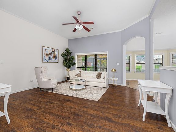 This rare, 1.5-level home boasts 4 spacious bedrooms, bonus up and a 3-car garage. Its open floor plan offers a bright and welcoming layout, perfect for entertaining. The primary suite features tray ceilings, a cozy sitting area, and his-and-hers closets. Enjoy a split bedroom design for added privacy, along with a covered patio and a serene cove lot. Additional highlights include a snack bar, numerous architectural arches, plant ledges, and a fully finished game room.
