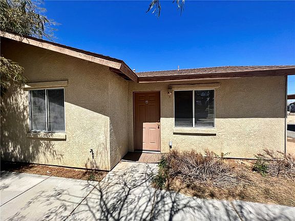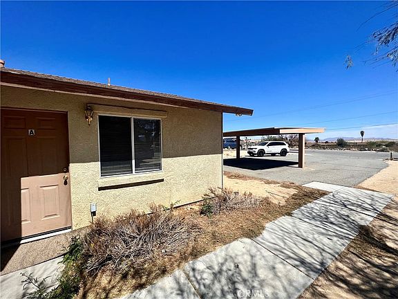 Clean and well-maintained duplex located in the heart of 29 Palms, just minutes from the 29 Palms Marine Base, Tortoise Rock Casino, and Joshua Tree National Park. This property features two spacious units, each offering two bedrooms and one full bathroom with approximately 900 square feet of living space. Each unit includes dual pane windows, a dedicated carport, and an additional parking stall. Interiors are updated with central HVAC systems and hard surface flooring in the kitchens, which are equipped with a gas oven, overhead vent, dishwasher, and refrigerator. Bathrooms include a tub and shower enclosure with a large vanity and mirror. Washer and dryer hookups are conveniently located in the hall closet. Each unit offers ample bedroom closet space and a comfortable living room area. Ideal for military tenants or small families seeking quality rental housing.