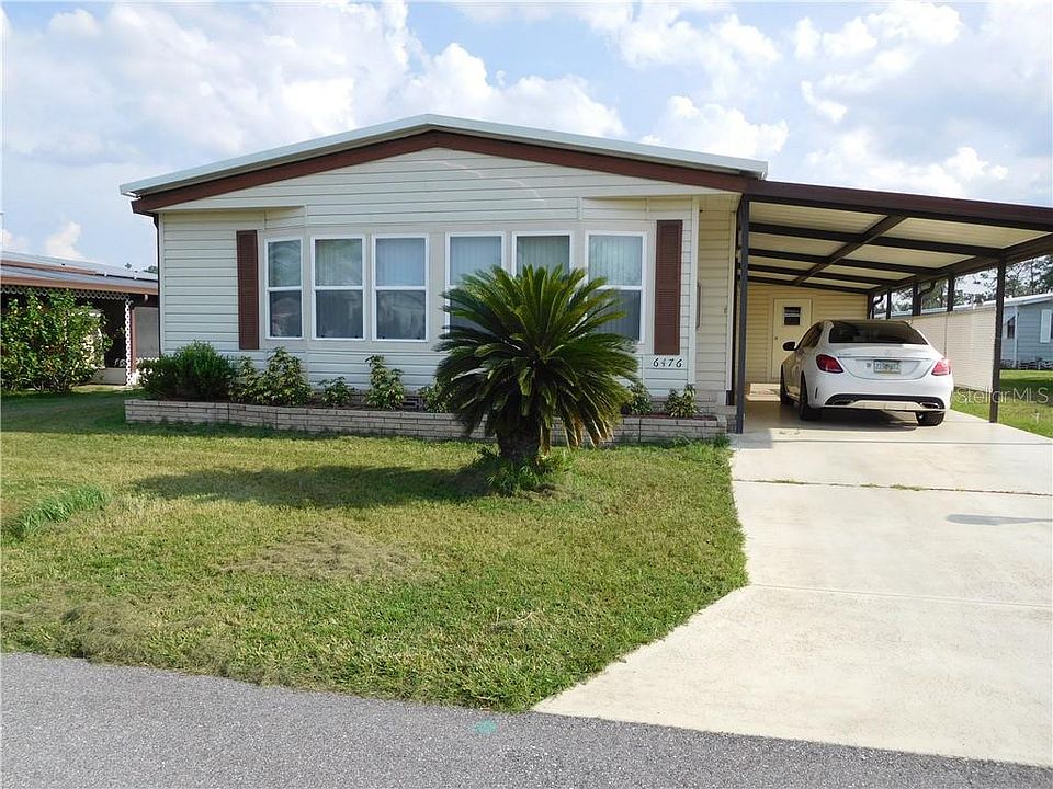 Enjoy this well cared for manufactured home in 55 and over community. The furniture and appliances are included. This home features a large open floor plan with family room, formal living room and formal dining room. The family room could be used for a bedroom as it has a large closet. Updated newer windows, laminate and tile floors, and toilets. Inside laundry. 2 car carport and large utility room with shelves. $27.00 monthly homeowners dues include community amenities of clubhouse, heated pool, shuffleboard court and RV lot. A GREAT PLACE TO LIVE.
