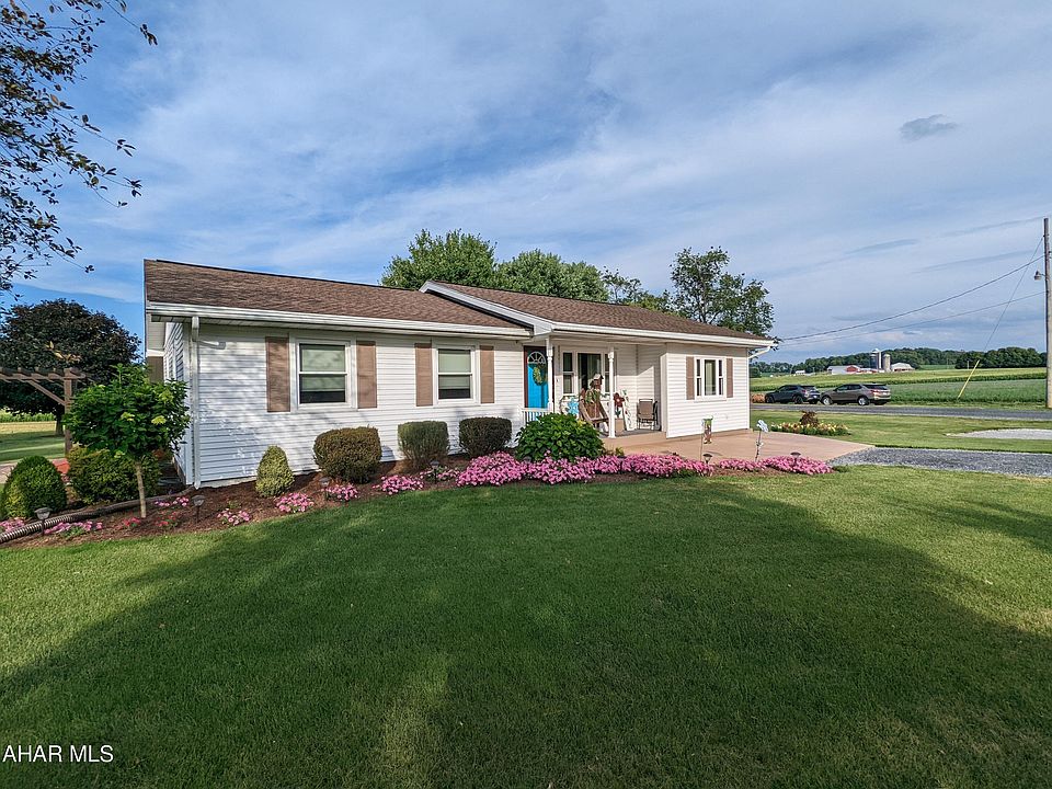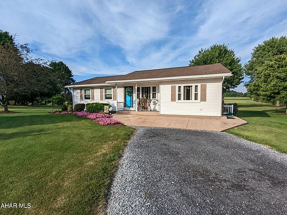 Immaculate Spring Cove area 1 story vinyl home on level 0.76 acre lot! Breathtaking and relaxing views from rear covered patio. Fantastic eat-in kitchen is spacious enough for the entire crew and includes center island with breakfast bar, very large eating area plus separate formal dining room. Beautiful formal living room, plus family room and adjoining sitting area. 3 bedrooms, 1 bath plus finished basement for loads of additional living space. Updated mechanics includes new roof 2019, new furnace 2005, new central air 2016, new hot water tank 2022. Covered patio plus separate patio w/ trellis. Loads of off-street parking plus 16x20 pole building and 10x14 shed. Sale contingent of seller securing alternate housing.