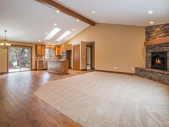 Beautiful new custom home with privacy, backs up to BLM between Bend and Redmond. Great room, upgrades galore, stainless appliances, hickory cabinets, granite, tile, and nice separation of bedrooms. Beautiful gas fireplace with hearth, vaults, light and bright, very nicely appointed. Paved driveway, 2 car oversized attached garage with a 26x42 detached shop/garage. This is a one of a kind property and a pleasure to show.