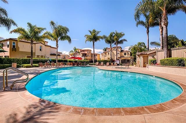 Beautiful private gated community. Corner location with a two-car garage. There is a greenbelt off the front door that only this unit has direct access to! End of the cul de sac provides privacy and limited car and foot traffic. The Portico pool is steps from the front door, a huge convenience! Home comes with a recently purchased high-grade refrigerator, washer, and dryer units. Air conditioning unit is a must during the late summer early fall months! Spacious master bedroom with walk-in closet and custom dual blackout and privacy sun shades. Downstairs also includes custom blackout and privacy sun shades that allow light but not sight. Upgraded kitchen with granite countertops and bamboo hardware flooring. Close to Alga Norte Community Park and convenient shopping at Bressi Ranch. As tenants, you have access to the Rancho Carrillo Community pool and clubhouse located on Carrillo Way. 3 month lease Pets allowed with additional deposit ($500 per pet-max 2) Parking included with attached 2 car garage for permanent residents. Two additional guest parking passes available, limited to 3 nights in a row, and no more than 12 nights per month per guest vehicle.