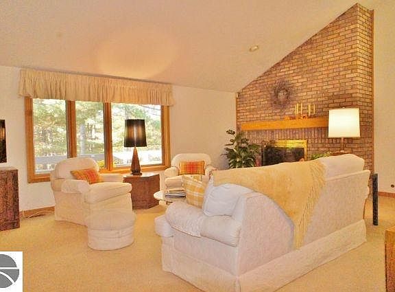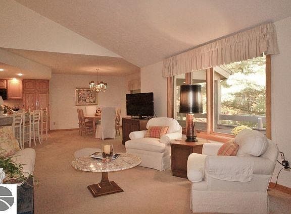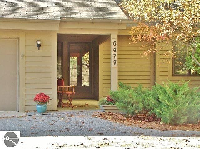 Gorgeous end unit in Port of Old Mission! Lots of natural light, but with the privacy and serenity of a wooded setting. Step inside to a meticulously maintained home, very clean, everything in great shape. Substantial remodeling was done in 2018, including kitchen, all bathrooms, floors, and full repainting. This condo has large windows, an open floor plan, main floor master suite, two gas fireplaces, and is a perfect Northern Michigan retreat or year round home. Park inside the attached one car garage, use a second garage just around the corner for a second car, storage, whatever you would like!