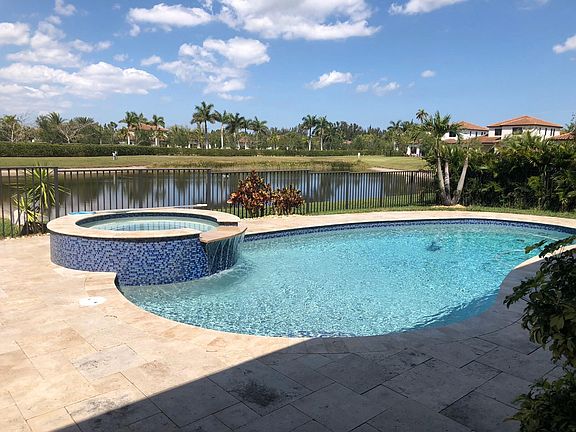 Immaculate split plan 4 bedrooms, 3 baths, 2 car garage pool home on the lake. Single-story home with 12-foot ceilings. Meticulously maintained. Upgraded kitchen with open layout, Granite counter tops, Large Island, and updated GE Profile stainless steel appliances. The breakfast nook and adjacent family room offer serene views of the lake with a fountain, pool, and spa. Very private Fenced yard. Large master bedroom features a double door entrance, tray ceiling and a large walk-in closet. Wake up to a tranquil view of the pool and the lake. Master bath features dual sinks, garden tub and separate shower. Community controlled sprinkler system that feeds off the lake. Pool Maintenance and Lawn Care are Included. House comes with a Wall unit with 80-inch 3D SHARP TV in the family room, a 42-inch tv in the 2nd bedroom, a propane portable generator, wine cooler, work bench in garage, grill and patio furniture. Garage has plenty custom-built shelves. House has professionally installed infrastructure 5 hi-fidelity zones for music ( 3 inside, 2 outside), 4 ethernet zoned for networks. Osprey Oaks is gated, luxury community of 171 homes with estate-size lots offering a club house, gym, pool, spa, four lakes and three parks. Osprey Oaks is located in one of the best/ school districts in Palm Beach County- Manatee Elementary, Crista McAuliffe Middle and Park Vista High Property does not have a mortgage Pool Maintenance and Lawn Care are Included