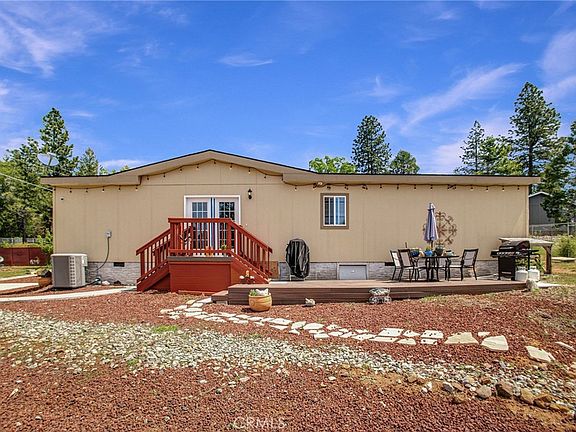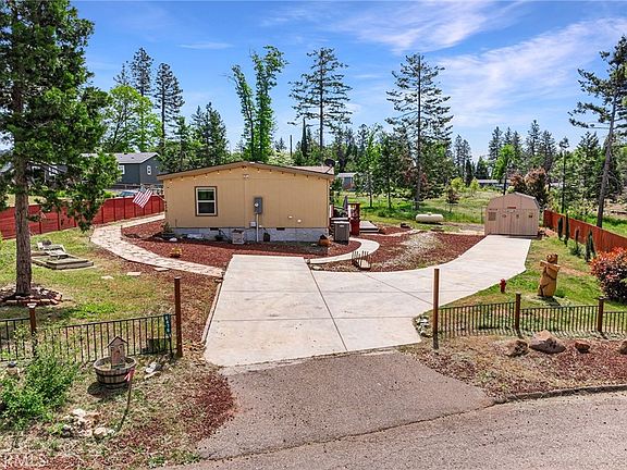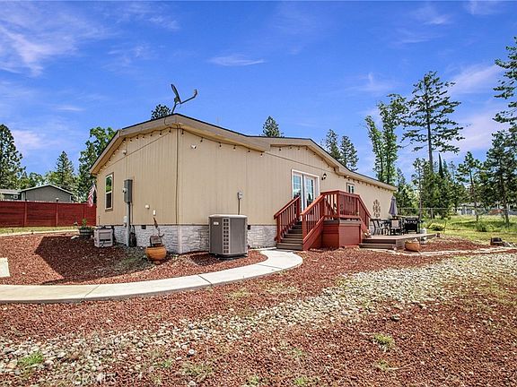 This 1493 sqft manf. home sits on a .26-acre lot tucked away in a quiet cul-de-sac. Just inside you find the living room, with large windows for natural light, luxury vinyl plank floors and open concept layout. Cozy up next to the fireplace on chilly evenings and enjoy the built-in entertainment center for movie nights with loved ones. The seamless flow leads you into the spacious kitchen, boasting a large center island table, drop lights, and stainless steel appliances including a dishwasher, sink, built-in microwave, and propane range with a step-in pantry and open layout. Adjacent to the kitchen is the dining space, featuring double windowed doors that lead to the back steps and a classic chandelier overhead. Retreat to the primary bedroom, complete with plush carpeting, a large window, ceiling fan, and an en suite bathroom for added convenience. Pamper yourself in the primary bathroom, including a step-in shower, double sinks, and a walk-in closet. The first guest bedroom provides ample space and comfort, with large windows and cozy carpeting, while the guest bathroom features a shower over tub and brushed bronze fixtures. The second guest bedroom offers versatility, perfect for use as an office space with its large windows and luxury vinyl flooring. The laundry room is equipped with washer and electric dryer hookups, a utility sink and cabinet storage. Outside, the front deck invites you to unwind with a good book, while a stone walkway leads from the driveway to the front door, adding to the home's charm. The back deck is ideal for entertaining, boasting a fire pit and ample space for outdoor gatherings. Additionally there is a large shed for your outdoor equipment. The property is fully fenced aside from the driveway opening. Located just minutes away from shopping, dining, and amenities such as the post office and public transportation, with a quick drive down Skyway leading you to Paradise and Chico for all your needs. In addition, the .23 acre lot next-door is also for sale (See MLS # SN24083168). Pick up both and have a near ½ acre of space to live and entertain. Residents of the Paradise Pines Property Owners Association gain access to amenities including a pool, spa, library, meeting rooms, playground, and hiking trails, fostering a vibrant and connected community spirit. For the outdoor enthusiasts, embark on fishing, water sports, and outdoor adventures from Paradise Lake, DeSabla Lake, Lake Oroville Marina, and the Feather River.