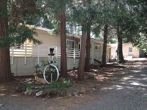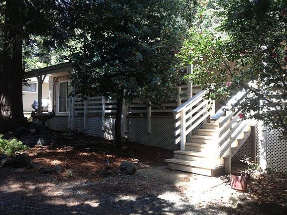 Well maintained manufactured 2 bedroom, 2 bath home on .35 ac. 2 out buildings, one is 15x19 and finished for guests/hobby room, the other is a tool shed. Circular driveway and wrap around porch. This home also features: auto drip system with 5 stations, waterfall, 5-year old roof, gas fireplace, new flooring, painted paneling, dishwasher, built ins, jack-n-Jill bathroom, inside laundry area, walk-in closet, dual pane windows and forced heating/air. Back gate access to Moss Lane.