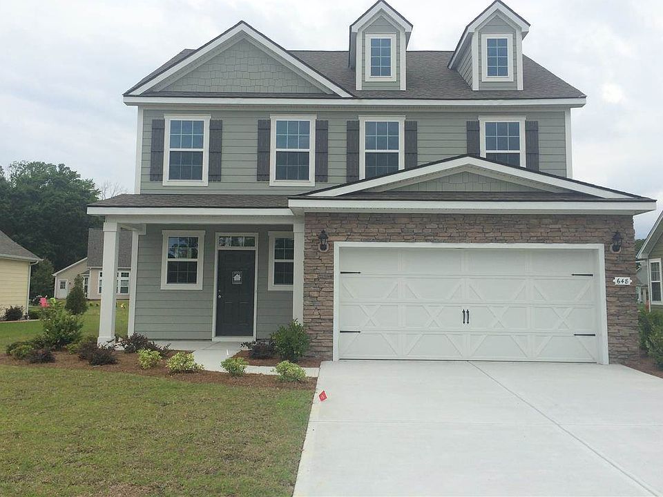 It's never too early to come see the neighborhood and make this home your own! This is a gorgeous two-story floor plan and has lots of room for everyone and TONS of storage, boasting 3 walk-in closets. Downstairs is the Great Room/Family room with hardwood floors throughout and extra windows, along with the formal dining, powder room and kitchen with upgraded raised panel cabinets, granite countertops and stainless steel appliances. Head up the open foyer staircase to the second story that has 4 bedrooms total, 2 with walk-in closets, and the master suite with upgraded bathroom. Off the back of the house is a beautiful Sunroom/Carolina Room with hardwood floors and a patio with installed gas line for grilling on your beautiful pond lot!
