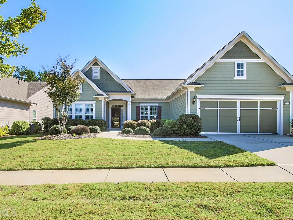 Nestled well within Sun City Peachtree, this beautiful 3 bedroom, 2 bath home has it all...inside and out! Enter thru the covered and custom tiled front porch to an expansive foyer. An office/den with built-in desk and bookcases...a great space to work, enjoy your hobby or just relax. The dining room, offset by trim and pillars allows for large family gatherings and friends and family dinner parties. (finally use that dining room set!) The generous great room with fireplace, upgraded trim and hardwood floors. (Hardwoods throughout the home, NO carpet). An inviting sunroom extends the great room with views of the wooded backyard. The Kitchen offers all the upgrades, granite countertops, tile backsplash, upgraded cabinets, walk in pantry, island, breakfast bar ...a gourmet kitchen and a chef's delight. The spacious master suite, more trim, more hardwoods and a wall of windows. Master bath: soaker, jetted tub, separate shower, linen closet, double vanity and etched glass window with remote shade and an owners walk in closet. Two roomy guest bedrooms and a full bath complete the interior. The exterior: Beautiful covered custom patio 29X16. offers privacy and a serene atmosphere. This beautifully maintained home is a must see.