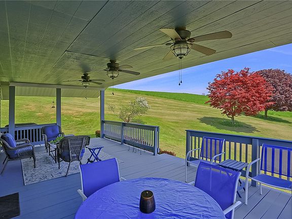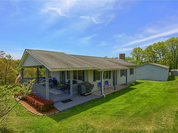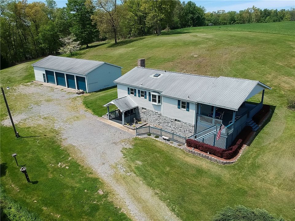 This one-owner, custom built, lovingly-maintained home has so much to offer! You'll love the updated kitchen w/ custom Amish made cabinets, granite countertops, and stainless steel appliances. Newer floors throughout the main level, Levolor blinds, and solid wood doors look great with any decor. The lower level features a large family room w/ fireplace, a 15'x13' bonus room, and laundry room. The central vacuum and Anderson tilt-in windows on all non-ground level windows (new in 2021) make cleaning a breeze. For your comfort the home has central air and three forms of heat - electric heat pump, oil furnace, and pellet stove (new in 2019). Enjoy beautiful views from the 30' covered deck, front porch or back patio. There are 4.26 acres and an oversized 4-stall garage with unlimited potential. There are two wells on the property, which has room for a second home (there was formerly a manufactured home on the other side of the garage). OGM lease (and royalties) transfer to the next owner.