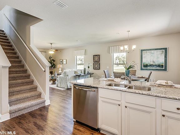 HUGE INCENTIVES and special interest rates currently available on this home!! Welcome home to the BEAUTIFUL community of Riverhorse! Convenient to everything Fairhope has to offer from restaurants, shopping, and of course, the Hallmark-like downtown scenery. The quaint community encompasses only 27 lots with picturesque backyards that are private and lush with natural landscape. This fully completed Azalea plan is the perfect layout for families. This two-story home gives you lots of space for your family and separation for privacy. The primary suite is located on the first floor as is the great room, kitchen, dining room, and half bath. The primary suite is spacious including a walk-in shower and double vanity. The second story features a LARGE BONUS room at the top of the stairs, perfect for kids' play space, movie room, study area and more. There are three additional bedrooms, laundry room and two full baths upstairs. Counters are quartz with under mounted sinks. Stainless steel appliances, soft close cabinet doors, and Luxury Vinyl plank flooring throughout. The home comes with a 1-year builder home warranty, 10-year structural warranty, termite bond, and is GOLD fortified. This home will come with our smart home package that has a video camera in the doorbell, touchpad door lock on front door with ability to control with your smart phone, and other features. 2 car garage with two door openers. The home is located on a private cul-de-sac lot with backyard view of the woods. Don't miss this one!