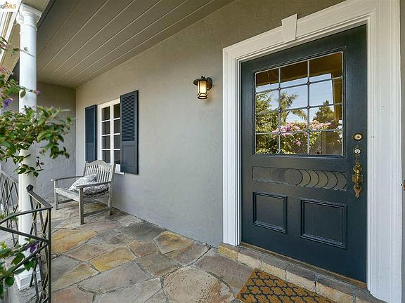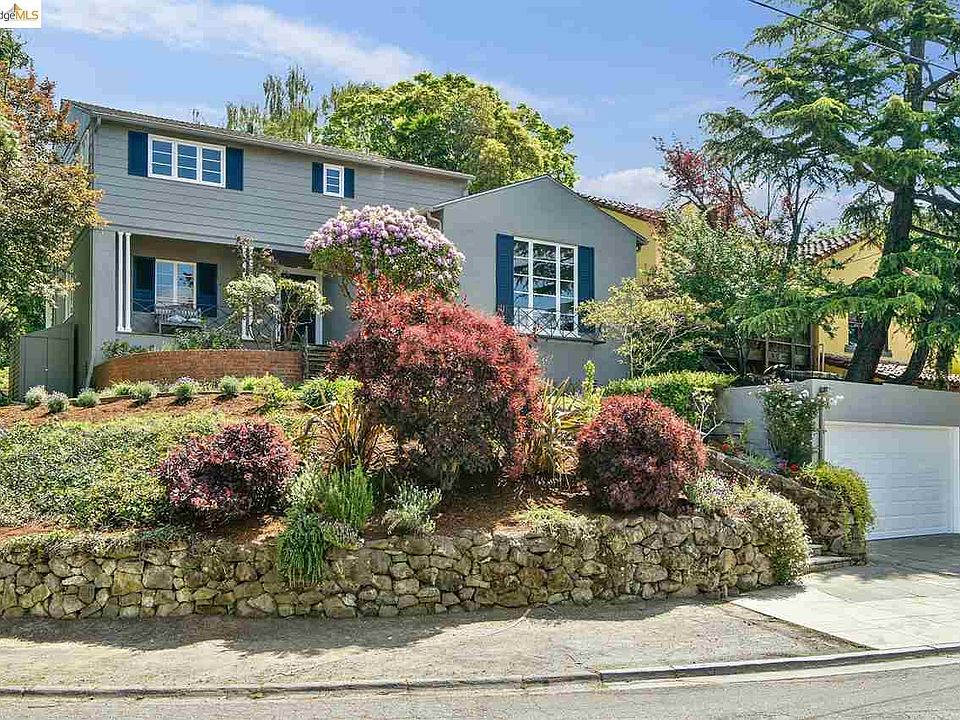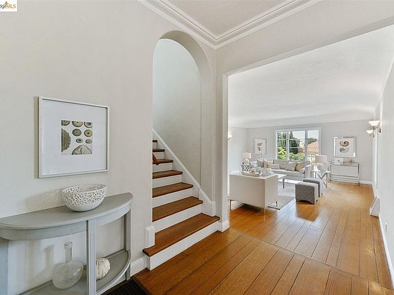 In the heart of the coveted Crocker Highlands neighborhood on a quiet street, this elegant and spacious 1930's Traditional is perched atop its own level parcel + surrounded by a large yard + patio. Elegant + sunny with charming front porch, large entry foyer + dramatic sunken living room with fireplace great for entertaining. Formal dining room + family room are ideal for family gatherings. Remodeled eat-in kitchen overlooks fenced flowering gardens. Generously proportioned rooms + well maintained architectural details throughout. Views of downtown Oakland and the Bay from the Master. Laundry on the main floor + plenty of storage in the unfinished basement. A 2-car detached garage. Serene setting with maximum privacy on a quiet street, near Crocker Highland Elementary, Lakeshore shops + restaurants - easy commute + public transport. Freshly painted inside and out and hardwood floors throughout. Exceptional home in a wonderful neighborhood!