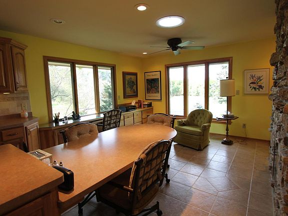 Beautiful 3 bedroom, possible 4, 2 car attached garage on almost 1/2 acre which abuts to DNR land on the river. Floor to ceiling stone fireplace in living room which is double sided into the updated spacious kitchen. Built in expansive desk area with gorgeous views of the river. Hardwood flooring on the main floor. Finished LL rec room, kitchenette, possible 4th bedroom with bath. Exposed basement with sliding glass doors leading out to the patio. Professionally landscaped yard with a large variety of perennials. New roof in 2015, updated mechanicals, some newer windows and sliding glass door.