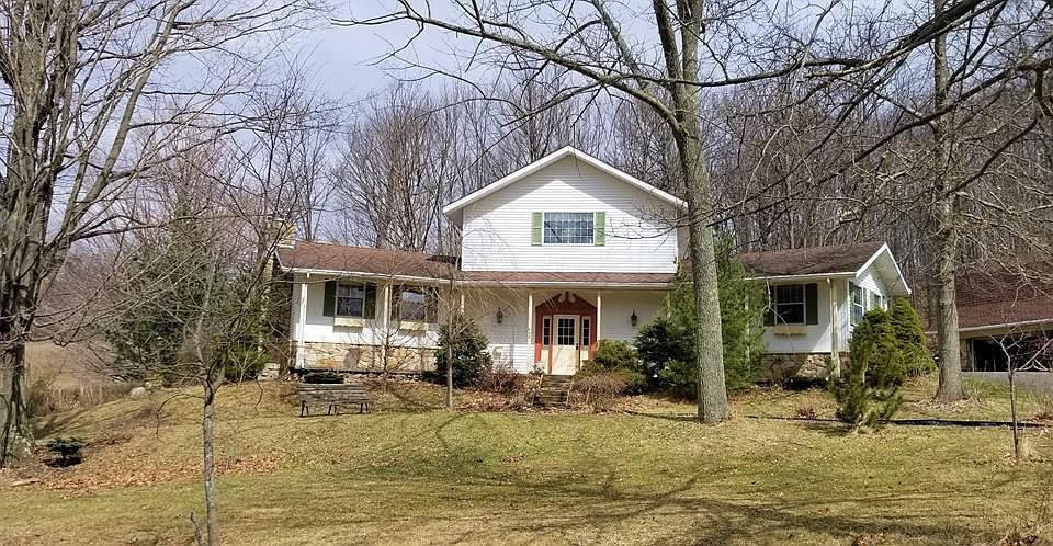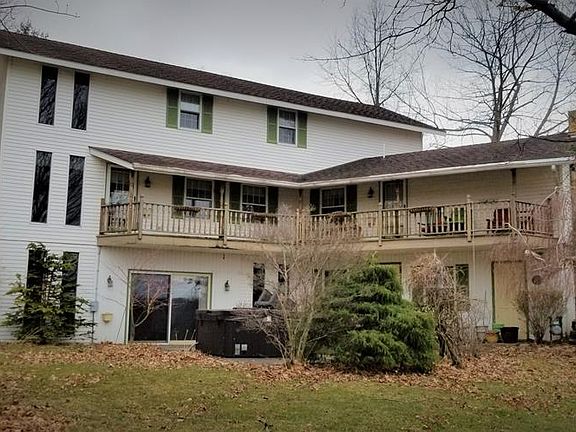 New Price!! Custom built one of a kind country home sitting on 17.82 +/- mostly wooded acres and OGM's are negotiable. Detached, over sized, 4 car garage with 2 bedroom In-Law suite or an apartment on second floor that can be used as extra income. Main home boasting PLENTY OF SPACE: 2 master bedrooms on 1st floor each on own wing. Open living, dining and kitchen with breakfast nook. 2 additional bedrooms & full bath on second floor along with smaller 3rd bedroom or use as office space. Spiral stair case leads down to the family room in basement where a coal stove warms the air. Additional rooms perfect for multi purposes, plenty of storage area, laundry and utility room. Plus extra deep closets / storage space may be found throughout to utilize all available space. Then unwind after a long day and step outside, relax and soak in your very own hot tub! Ask about available drone video! sqft from court records.