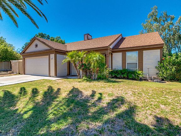 Come & see this charming single level home located in the heart of Chandler w/ NO HOA! Featuring grassy front yard and 2 car garage w/extended driveway, this lovely property has everything you're looking for! Step inside to discover vaulted ceilings, tile flooring in main areas, spacious living room, brick fire place & bright dining. Kitchen is equipped with stainless steel appliances, pantry & plenty of counter space. Master bedroom has private bath & closet. Large backyard is an entertainer's dream with covered patio, fire pit, multiple seating areas, built-in BBQ, storage sheds, lawn & a refreshing blue pool. This home has a newer: roof, A/C, bathrooms, garage, block wall, wood floors and electrical. What are you waiting for? An opportunity like this won't last! Call today!