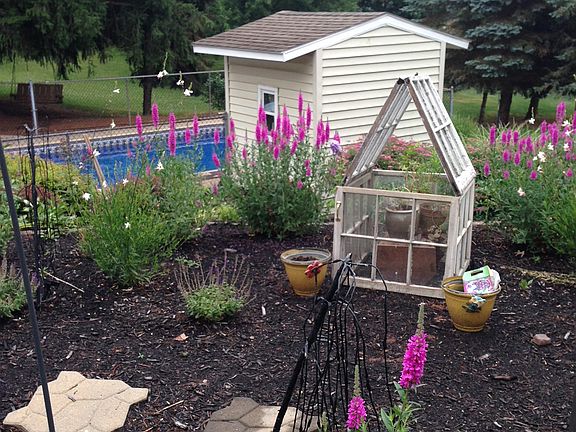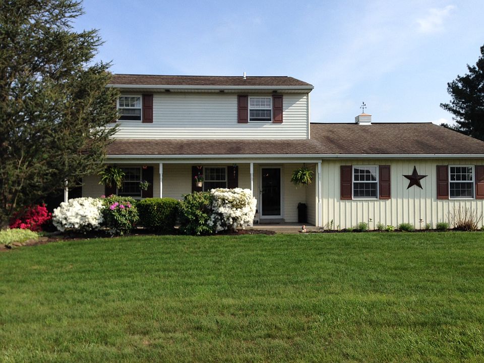 Pre-Inspected for peace of mind. Lovingly maintained inside and out. This home has amazing gardens & landscape that can be enjoyed on patio covered by gazebo or from the pool with new liner and pool house or the firepit at the back of the 1+ acre lot. The inside has been painted and the kitchen updated with tile backsplash, stainless steel appliances and portable center island which will convey. Kitchen is open to Family room with hardwood floors and gas fireplace with new mantle. Beautiful sun room (or 2nd family room) overlooks lush yard. There is also a small 1st floor bedroom that could serve as an office or craft room. Owners suite with full bath and 3 additional bedrooms and full bath on 2nd floor. Full basement has the ability to be in-law or rental with a 2nd kitchen, 5th bedroom and living area ~ all with separate exterior access if needed. Home has a 2 car attached garage with pull down storage and a 1 car detached garage with a large workshop attached. 2 additional out buildings for all of your yard equipment. A joy to show!