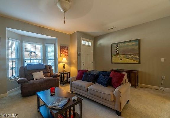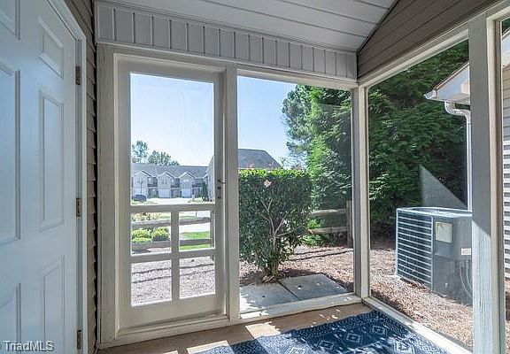 LOCATION! LOCATION! LOCATION!! Seller will leave the large entertainment center for the Buyer!! Charming townhome with 2 BR and 2.5 baths, making it the perfect blend of comfort & convenience. Located moments from shopping, restaurants, & major interstates, ideal for commuting throughout the Triad! Close to Guilford College, great place for room mates! Screened-in Porch with storage closet. Bay window in the front room adds natural light; built-in storage under stairs maximizes space. Great place for a couple of college kids! Per seller, Interior freshly painted in 2020 & quartz countertops /backsplash in kitchen. Enjoy a farmhouse sink and new toilets 2024. Comfortable Living with NG FP & heat pump for efficient heating. Primary Suite offers small WIC and an additional closet for ample storage. Hall Bath Features a shower/tub combo & single vanity. Come take a Look TODAY! Seller requests that all wear shoe coverings which are provided as you enter. Schedule a viewing today!