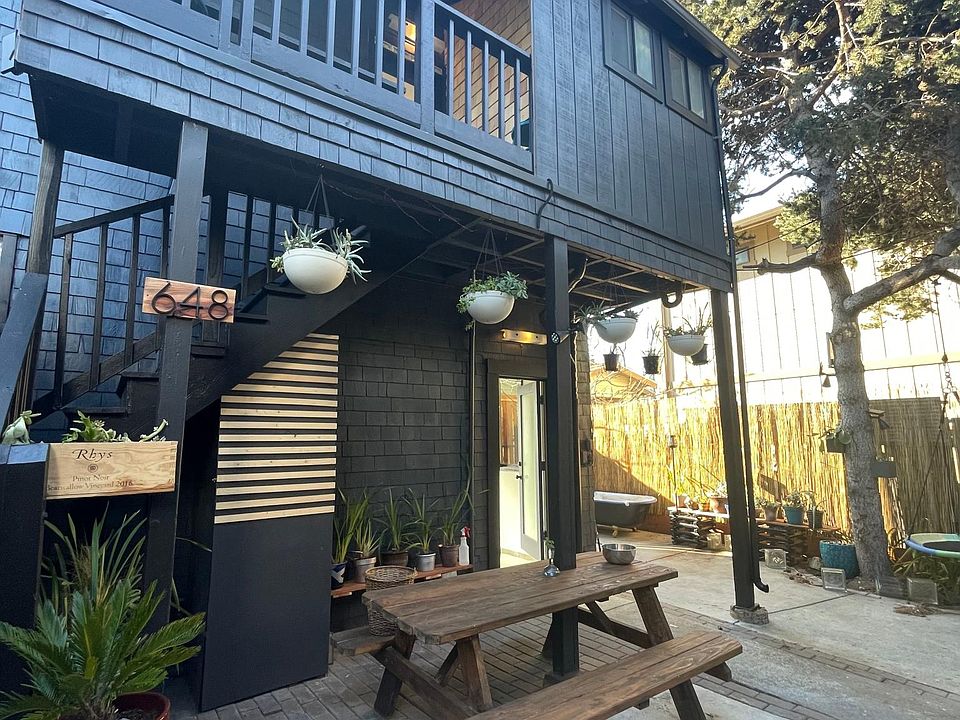 You won't find anything else like this completely remodeled urban contemporary oasis in a West End triplex. Be the first to live in this brand new 2 story 2+BD/2BA professionally designed unit in a fabulous location just off Webster St, near shops, restaurants, easy transportation, twice weekly farmers market, and Alameda's wonderful shoreline and park at Crab Cove. The two story with loft rear cottage has hard surface flooring throughout, lots of closet space, a chic modern kitchen and two full baths. There are two bedrooms with private entry on the ground floor, and up one flight of spiral stairs is the main living area and kitchen with seating area. You'll love all the designer touches that are included. Upstairs in the windmill tower is a bonus loft that would be a great guest room, office, etc. The apartment includes a washer and dryer for your convenience. Pets are negotiable with additional deposit. Tenant pays gas and electric. Street parking only. Available now for move in within 2 weeks! Listed for private owner by Gallagher and Lindsey. Combined income of 3x rent and good credit are required to qualify. Please reply or contact Melanie ext 1210 to schedule a showing. Owner pays water and garbage One year lease Pets negotiable with additional deposit $40 application fee Tenant pays one time 30% leasing fee Street parking only