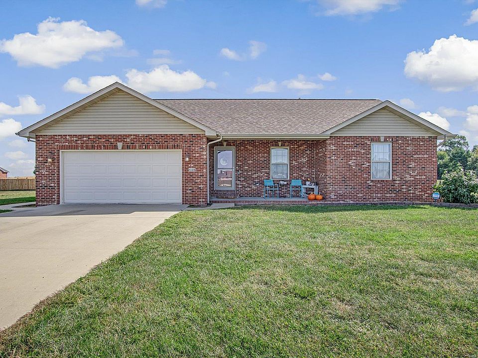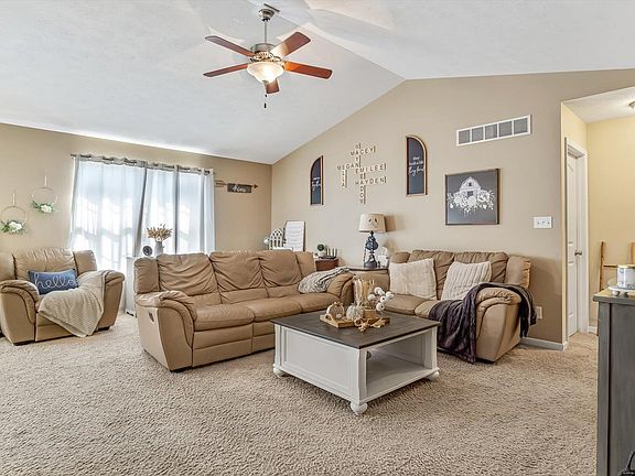 Charming 4 bedroom ranch located in St. Libory, IL. Step inside to a large foyer leading into the spacious living room with a vaulted ceiling. The kitchen has beautiful cabinetry, SS appliances, and a breakfast bar. Three bedrooms are located on the main, the master bedroom features a walk-in closet and a full bathroom. Bedrooms 1 and 2 are carpeted and right off the master. The finished basement adds extra square footage, great for entertaining and/or relaxing. The basement features bedroom 4 and a rough in for a bathroom. This home is on a cut-de-sac and has beautiful lake view!