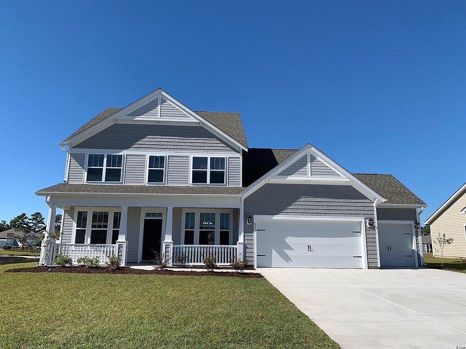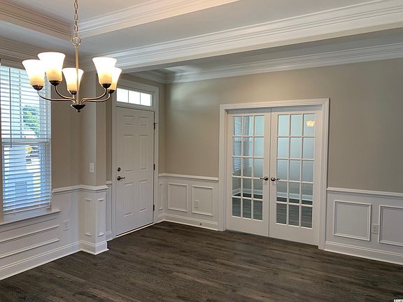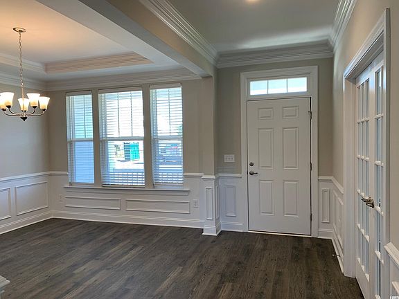 This popular Ivey home has been personalized with the buyers specifications. This Ivey features a study with French doors, a large foyer, a beautiful dining room, butler's pantry, kitchen open to the great room, a covered porch, first floor primary bedroom en suite, powder room, and privately located upstairs are 2 bedrooms that share a bath, a loft, attic storage over the garage, and a 3-car garage. This Ivey has been customized with a gorgeous gourmet kitchen featuring a Daltile herringbone tile backsplash, Whirlpool stainless steel appliances (natural gas cooktop, wall oven, wall microwave, dishwasher), a stainless steel hood vented to the exterior of the home, a stainless steel apron farm sink, frosted glass pantry doors, wooden pantry shelves, 42" Master Brand cabinets with roll out shelves, soft close doors and drawers, and a huge Quartz work/breakfast island and breakfast nook. Low maintenance Mohawk REV Wood flooring is comfortably located throughout the downstairs of the home. Brushed nickel Progress Light fixtures, a designer trim package, crown molding, chair rail, and picture molding add style and charm throughout. Faux wood window blinds and Sherwin Williams paint add a finishing touch throughout. Daltile tile enhances both full baths, the powder room, and laundry room. Master Brand cabinets were added to the spacious laundry room for additional storage. Kwik-Set brushed nickel door levers were added for convenience throughout the home. A Progress Lighting ceiling fan with a 60" downrod was added to the great room; a perfect accent for the soaring ceilings. Upgraded carpet was added to the loft and privately located upstairs bedrooms. Gorgeous oak treads are a lovely accompaniment to the open rail iron balusters on the stairs. The luxurious primary bedroom on the first floor boasts a bay window, tray ceiling and a fantastic tile spa shower with a Moen rain showerhead and wall showerhead and 2 walk-in closets. An Energy Star certified home to ensure the homeowners experience comfort at a lower cost. Belle Mer amenities feature a pool, clubhouse, exercise room, sidewalks throughout, weekly curbside trash collection, and street lights. A convenient location between Myrtle Beach and Murrells Inlet, between "The Two-17's" less than 3 miles to the beach, and across the street from 3 large shopping and dining venues.