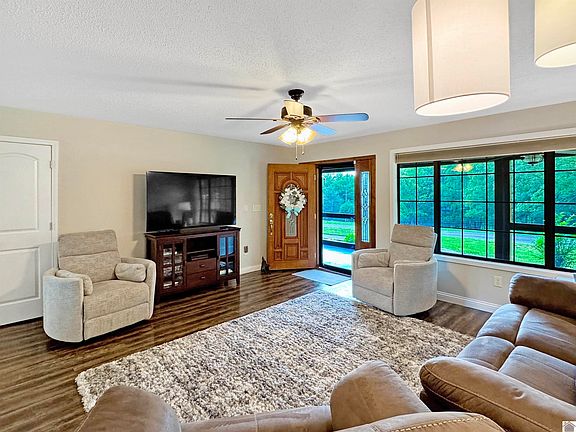 Discover The Perfect Blend Of Rustic Charm And Modern Comfort In This Expansive Single-story Home, Beautifully Situated On 5 Private Acres. With A Striking Stone And Log Exterior, The Home Radiates Classic Country Appeal, While The Interior Offers A Clean, Modern Feel. Featuring 4 Bedrooms, 3 Bathrooms This Thoughtfully Designed Layout Includes Two Separate Living Areas, A Stunning Kitchen, Spacious Laundry Room, And A Versatile Flex Space. Luxury Vinyl Flooring Flows Throughout.the Primary Suite Is A Cozy Retreat, Complete With A Gas Log Fireplace, And Luxury En-suite. The Open Concept Family Room And Kitchen Create An Inviting Space For Everyday Living, Centered Around A Gas Fireplace With A Custom-carved Mantle Depicting The Property. The Attached 2-car Garage Is Finished From All Angles With Locker Storage. Step Outside To Enjoy The Screened Porch Or Host Gatherings By The Pool. Detached Shop With Lean-to And Livestock Stall, With A Fenced 3 Acre Wooded Area To Roam.