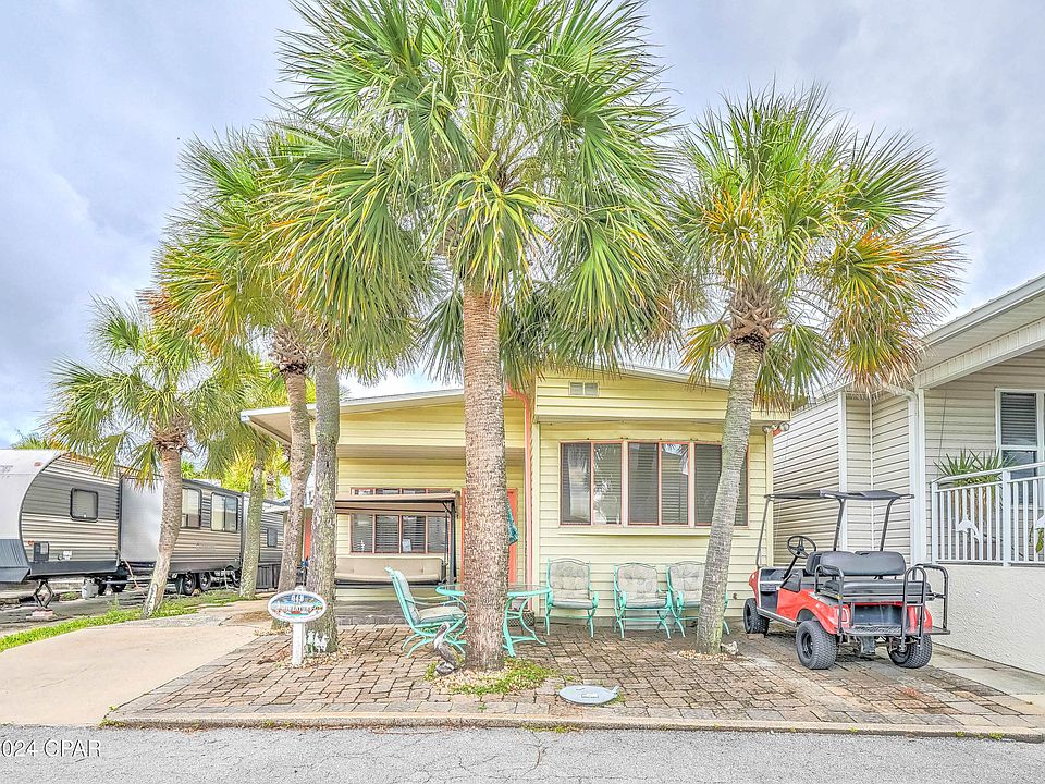 CURRENTLY UNDER CONTRACT, SELLER WILL CONSIDER BACKUP OFFERS - Tons of potential found here in this 2-bedroom Venture Out home. Great open floor plan and good size bedrooms. The home is being sold furnished with the golf cart. Excellent investment opportunity or make this your vacation dream home. Great outdoor entertaining area, perfect for relaxing after a long day at the beach! Venture Out is a golf cart community that has exploded with popularity recently... With 300' on the beautiful pristine beaches of the Gulf of Mexico and 1,000' on the Grand Lagoon. Venture Out has something for everyone.