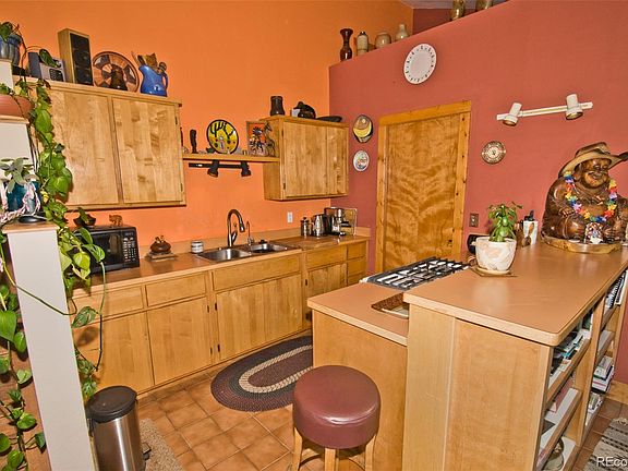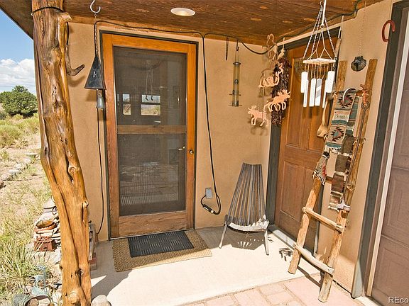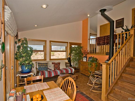 This Southwest style one bedroom, one bath, split level home sits on 2.921 private acres with stunning valley views. Although close to town and a paved road, it is tucked into the landscape with privacy all around. With floor to ceiling windows, the home is passive solar and very light filled with views. The living and dining areas are open with high ceilings and tiled floors. A beautiful propane heat stove is located in the living room. Kitchen is slightly offset from living space but open to the views as well. A very large pantry with refrigerator is off of kitchen. Up a half a flight of stairs with wood railings and banister is the large master bedroom with wood floors. The master has a wall of built-ins for storage and a private room accessed by a small door for storage, meditation or sleeping. Off the upstairs hall is the full bathroom with a large walk-in closet and stacked washer/dryer unit. At the end of the hall is an open multi-purpose room, full of windows and light that is currently used as an office and bedroom. There is an attached single car garage that could be converted to more house space if needed. The home is situated away from the main road of Rendezvous by a long driveway with extra parking above the home and parking also close to the home. The land uniquely offers amazing protected space.