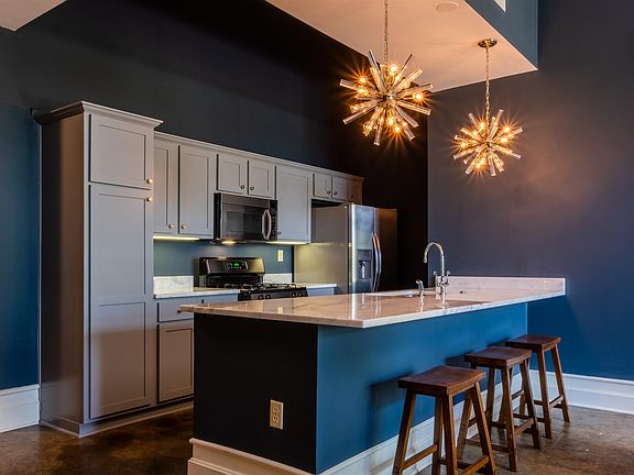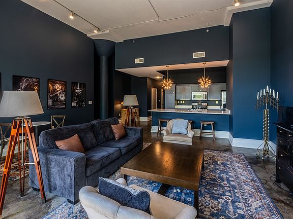 Must see gorgeous 1BR/1BA downtown condo. Concrete flooring with high concrete ceilings, updated lighting, granite, updated kitchen where island is lower and larger which is great for entertaining! Gas range, refrigerator, washer and dryer included. Don't miss the sunset from the rooftop! Great place to gather and grill out. Gated parking in the garage, workout room, lobby with pool table and sitting areas too. Enjoy coffee on your balcony. Close to river to ride your bike over the Mississippi!