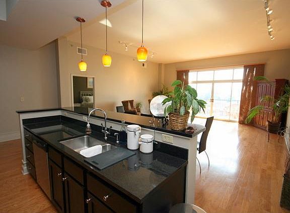 Top floor condo with river view. Beautiful interior. All the top upgrades you would want. Great downtown location. 2 parking spaces. Top of the line kit. w/gas stove. Beautiful granite. Both bd have built-in cabinets. Extra large laundry room